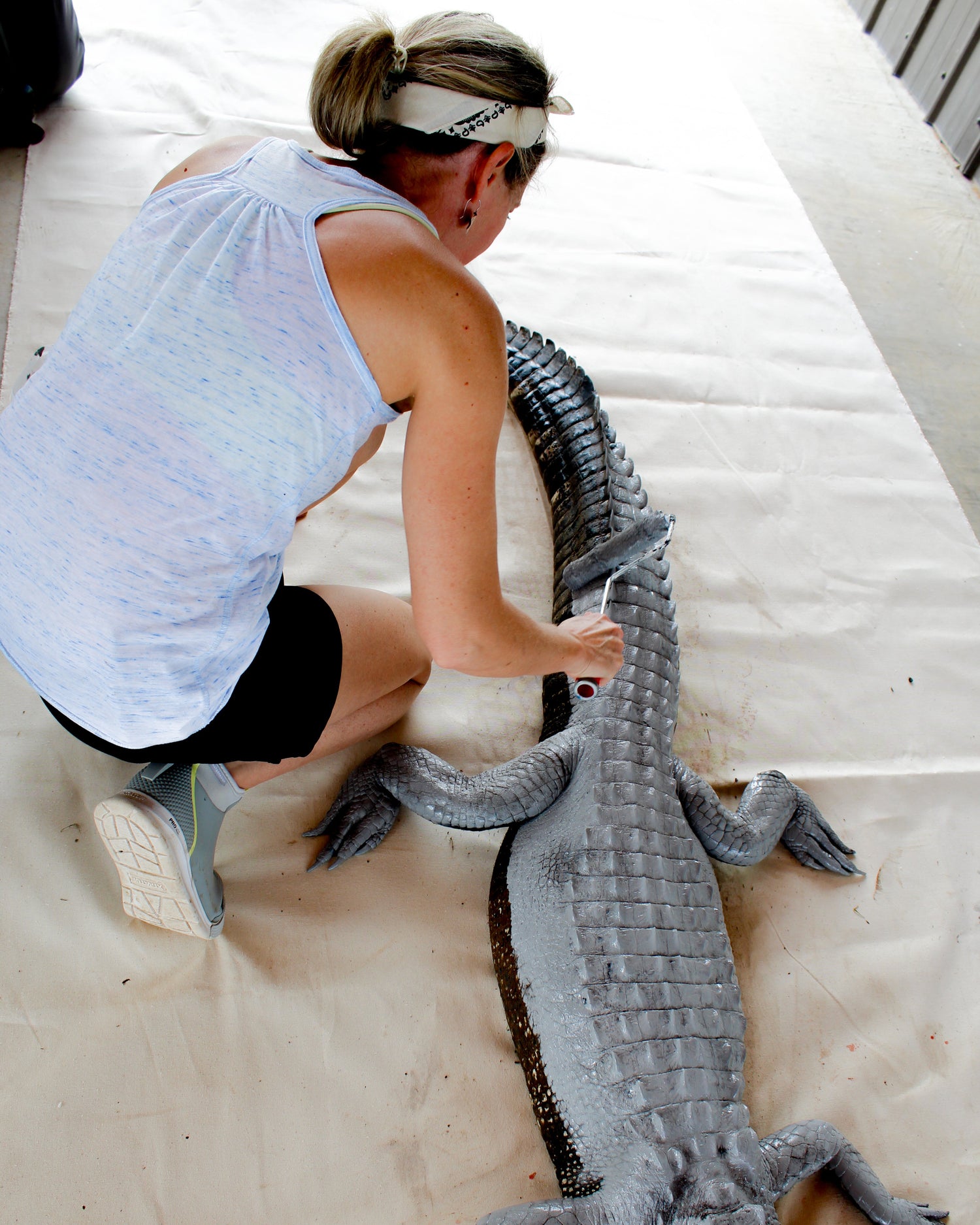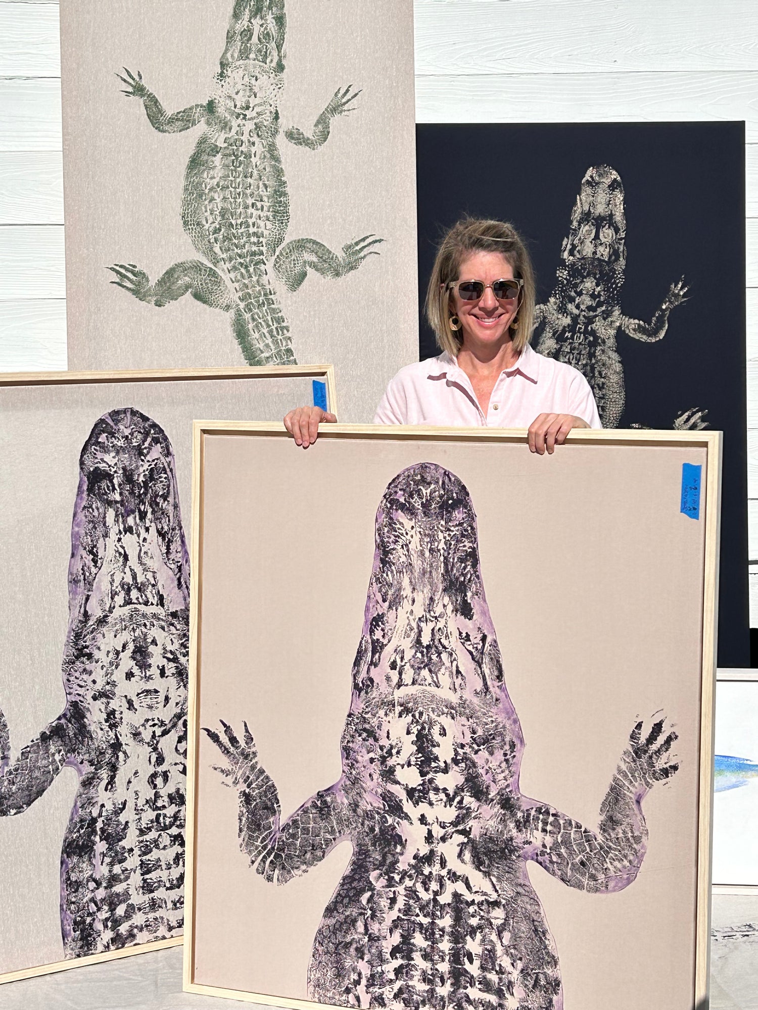 Leslie’s work is physical. Printing gators and 600-pound tuna is just as labor-intensive as it sounds. More physical than even that, though, is the printing process. When Leslie creates her prints, she takes great care to appreciate and document every little quality that made the animal unique, a creature that lived and breathed. Her prints contain the animal’s DNA, permanently pressed onto the surface and giving the creature new life. Leslie expertly captures the animal’s individual features, imperfections and all, beautifully honoring the animal forever.
