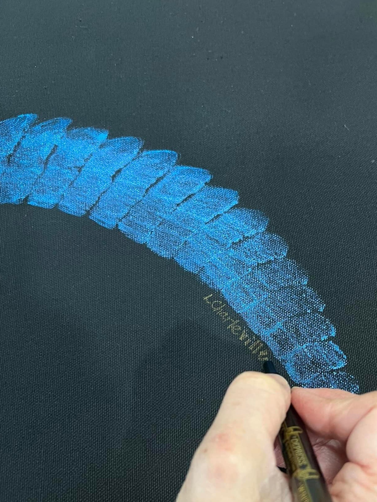 Carefully detailed by hand, signed by Leslie, and stretched tight on wooden bars, each piece comes ready to hang—no frame required!
